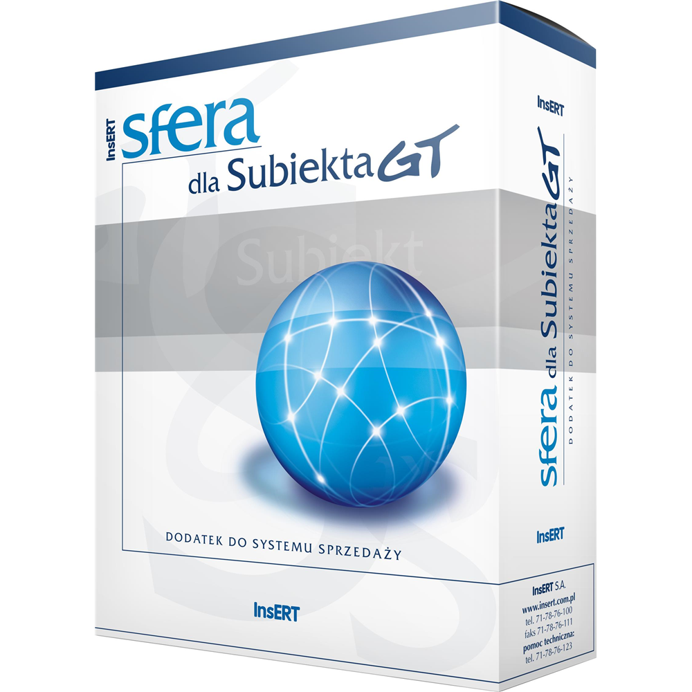 Sfera dla Subiekta GT powstała z myślą o użytkownikach, którym zależy na rozbudowie funkcjonalności Subiekta GT. Sfera dla Subiekta GT otwiera zupełnie nowe możliwości wykorzystania Subiekta GT, czyni z niego produkt skrojony na potrzeby każdego użytkownika.
